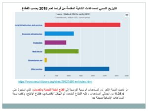 Øشكلت المساعدات المقدمة ما نسبته (0.44%) من الدخل القومي الإجمالي الفرنسي للعام 2019، ومثلت المساعدات المقدمة في إطار ثنائي قرابة الثلثين.